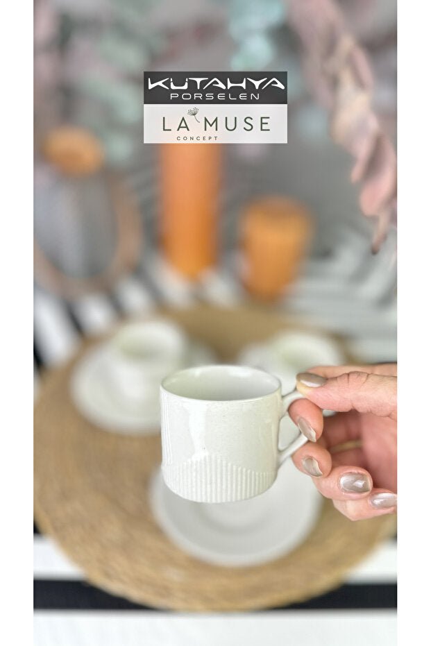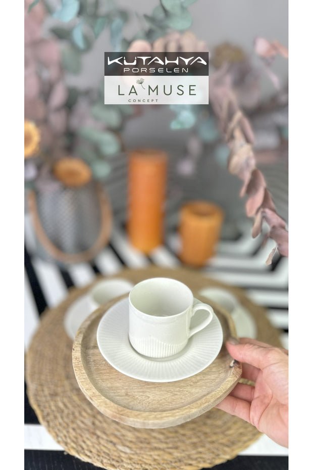 Fremstillet af Kutahya Porselen, et anerkendt navn inden for fint porcelæn, kombinerer dette 12-delte sæt til 6 personer tidløs elegance med enestående holdbarhed. Hver kop og underkop er omhyggeligt designet for at forbedre ritualet omkring kaffeoplevelsen.