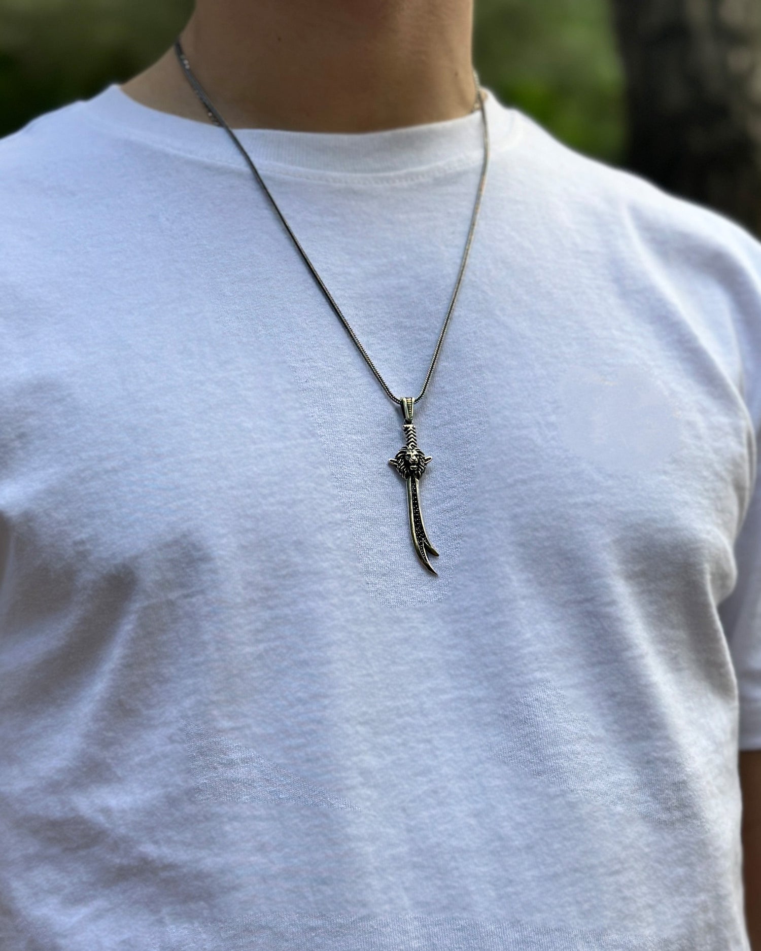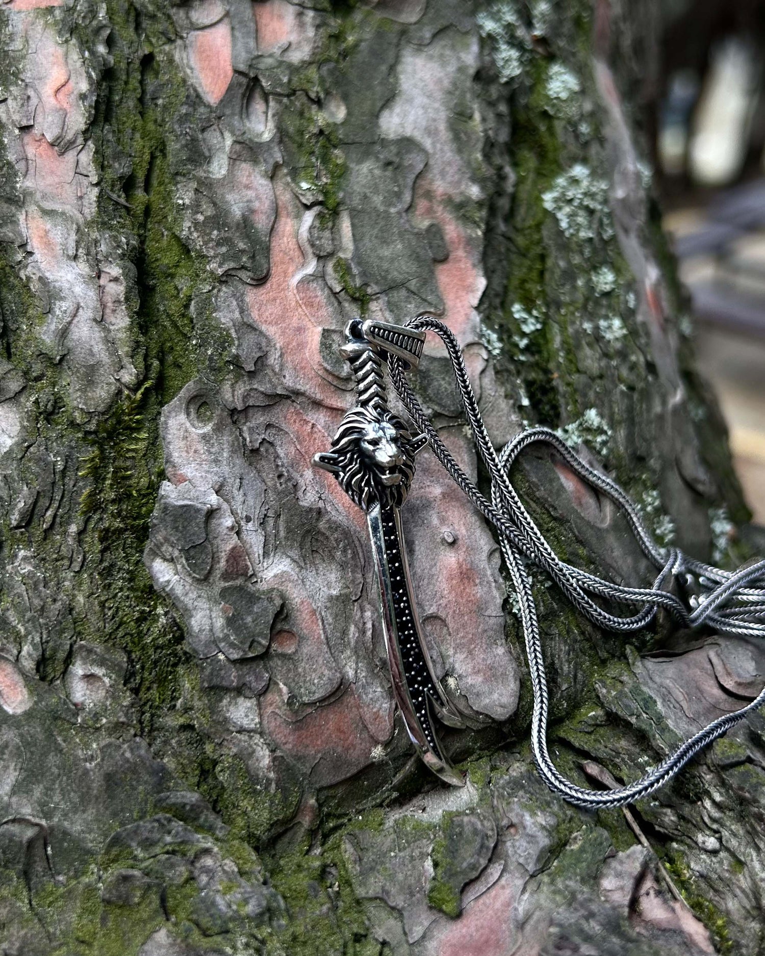 Håndlavet sterling sølv løvehoved Zulfiqar vedhæng halskæde