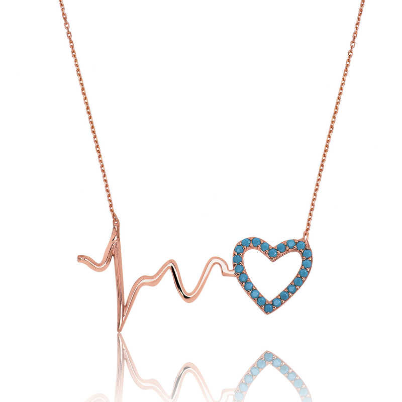 Halskæde - Rosaguldbelagt Heartbeat Pulse & Turkis Hjerte