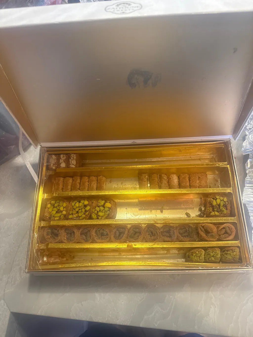 Mix baklava fra Zaitoune Sweets er fyldt med tyrkiske desserter, der indeholder søde bagværk lavet af tynde lag dej, fyldt med nødder som valnødder og pistacienødder, og sødet med sirup. Pakken har et cover lavet af forstærket pap, understøttet af et nyloncover, for at sikre beskyttelse af produktet mod eksterne faktorer som fugt og for at bevare dets kvalitet og smag.