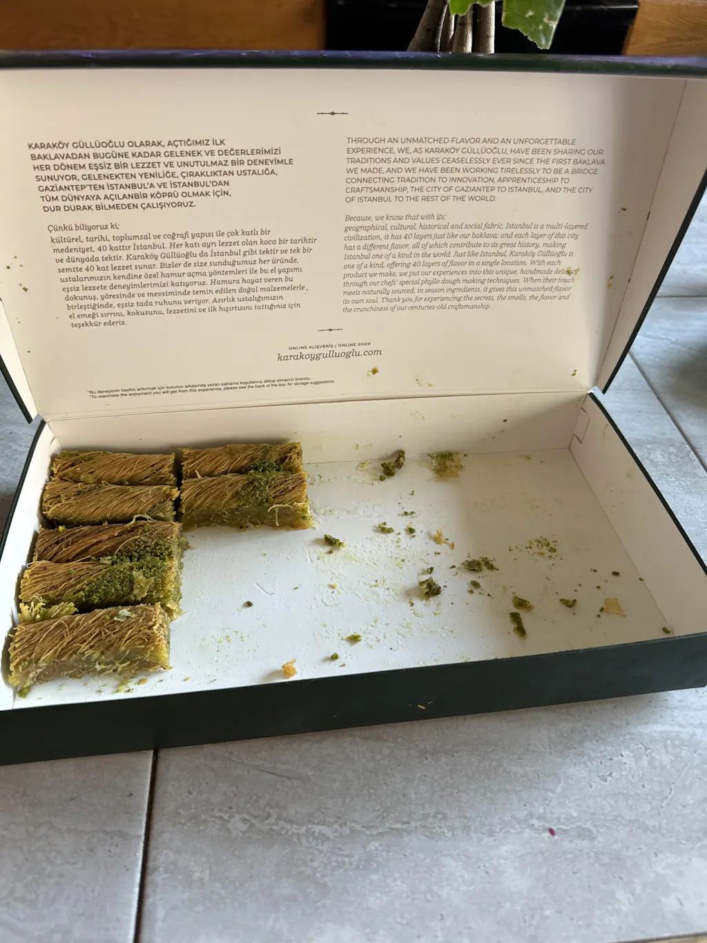 So genießen Sie: Für das beste Erlebnis erwärmen Sie Ihre Baklava in einem herkömmlichen oder Toasterofen 5-7 Minuten bei einer Temperatur von nicht mehr als 300°F.