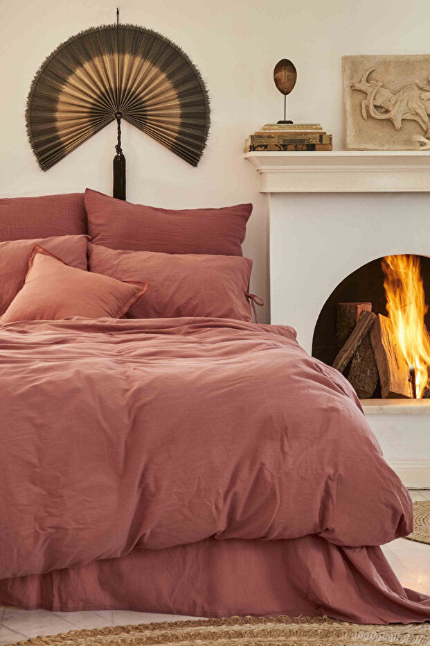 حوّل غرفة نومك إلى ملاذ دافئ وجذاب مع طقم غطاء اللحاف تيراكوتا كاراجا هوم 4 عناصر أتيس. مستوحى من عنصر "النار"، يجلب هذا الطقم الطاقة والحيوية إلى مساحتك بلونه التيراكوتا الغني.