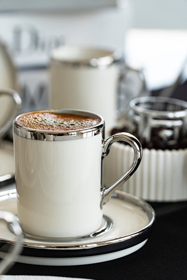 Farika Porselen Gozde Premium Platinum Gilded Turkish Coffee Set - 12 Piece - TryAladdin