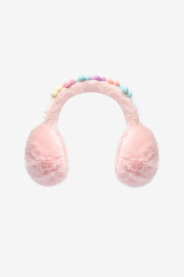 Girls Daisy Earmuffs - Pink with colorful Pom - Poms - TryAladdin