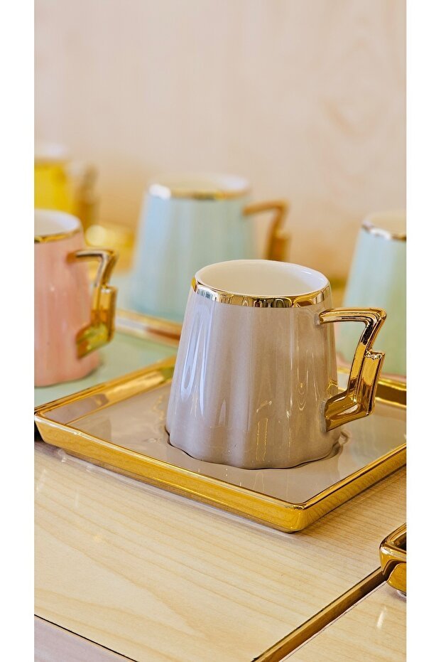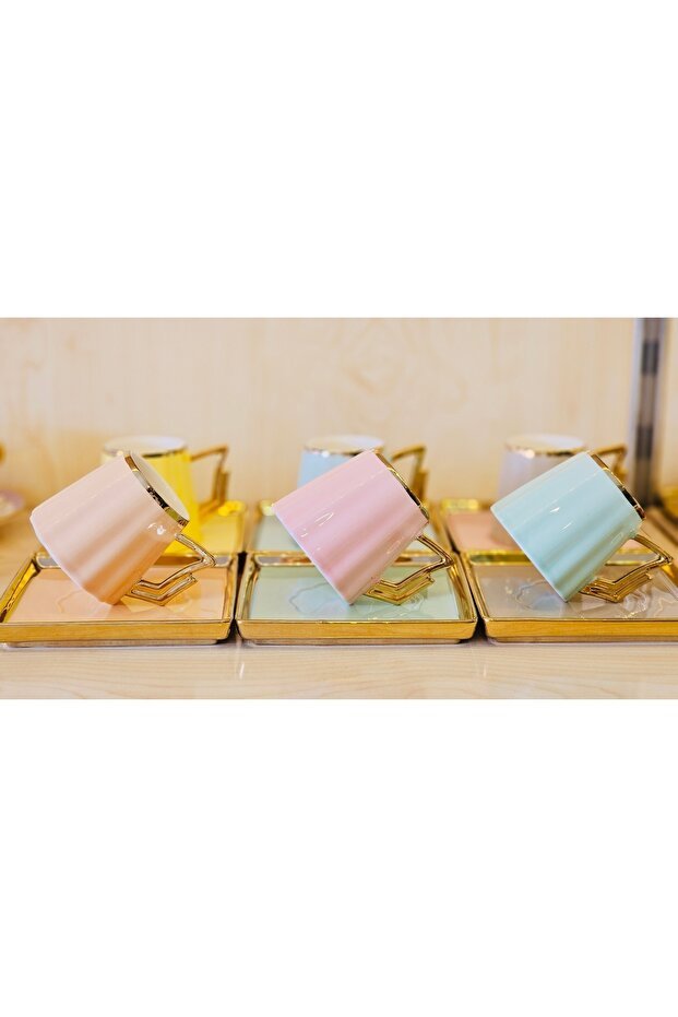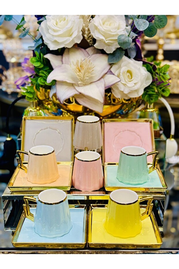 This exclusive set features six meticulously designed porcelain cups and six matching saucers, each boasting a vibrant and colorful pattern. Made from high-quality porcelain, these cups are not only beautiful but also durable and designed to withstand the rigors of commercial use while preserving the rich flavors of Turkish coffee.