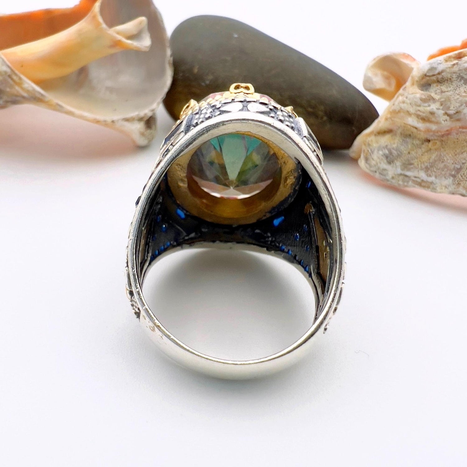 Elevate your style with this exquisite Mystic Topaz Stone Men's Ring, meticulously handcrafted in 925 sterling silver. This unique Ottoman style ring is a statement piece of men's jewelry that exudes elegance and charm.