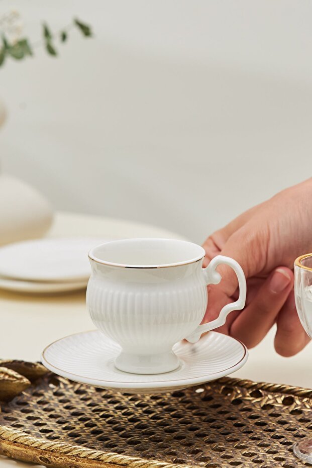 Crafted with meticulous attention to detail, the Karaca Malta set embodies superior artistry and functionality. Each 100ml cup is perfectly sized for traditional Turkish coffee, ensuring an authentic serving, while the accompanying saucers complete a sophisticated presentation that speaks volumes about quality.