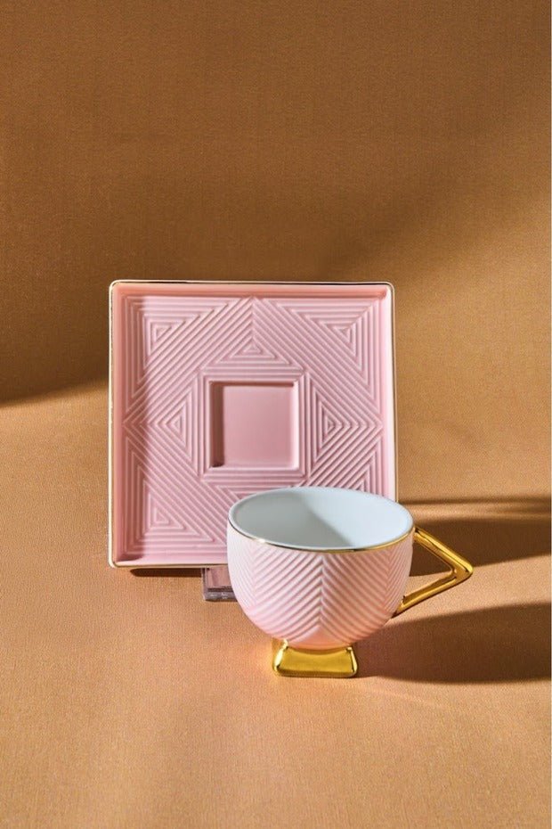 Karaca Premium Art Deco Porcelain Coffee Cup Set - 2 Person - 80ml Cups - TryAladdin