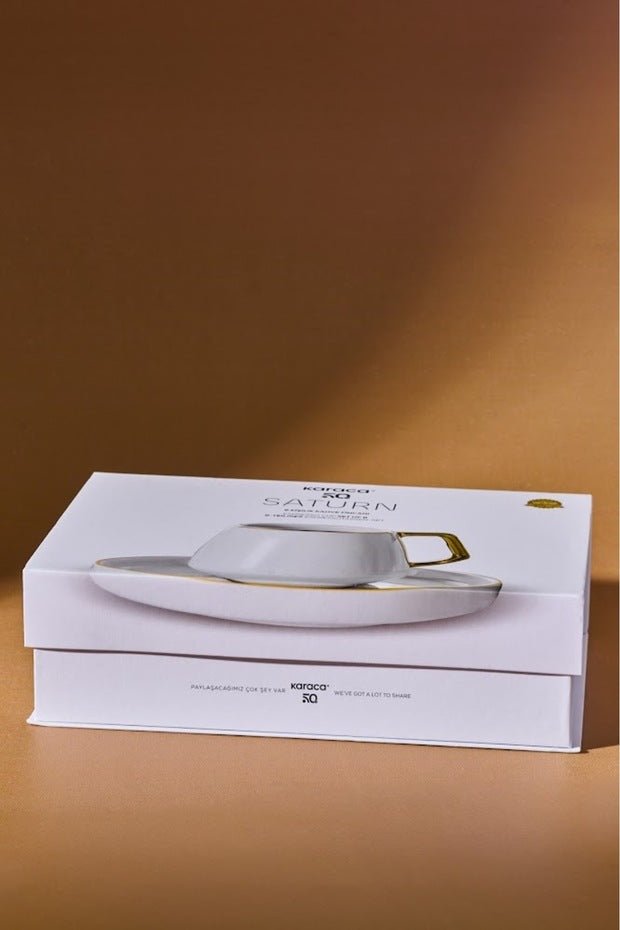 Captivate your customers with the Karaca Saturn Professional Gold Turkish Coffee Cup Set, an exquisite blend of traditional elegance and modern design, perfect for elevating any beverage service.