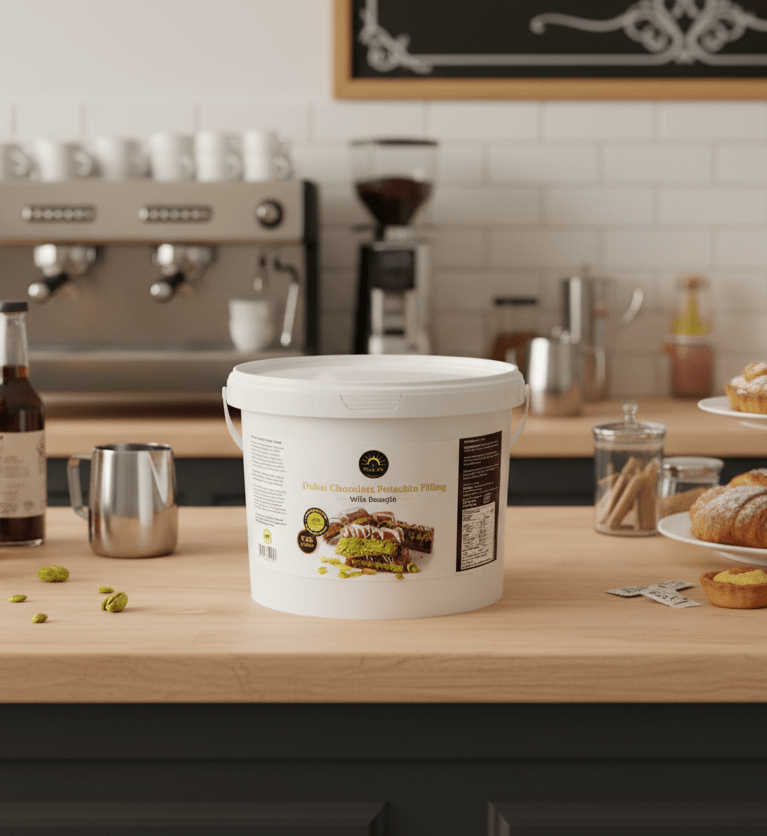 Bring a new level of indulgence to your dessert creations with Malak Dubai Chocolate Pistachio Filling with Kunafeh, a premium blend featuring 20% Antep pistachios and the traditional sweetness of kunafeh (kadayif). Designed for chocolatiers, boutique bakeries, and modern cafés, this ready-to-use filling combines creamy texture with a bold flavor profile that’s both nostalgic and innovative.