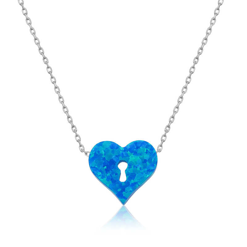 Necklace - Sterling Silver Blue Opal Heart Keyhole Pendant