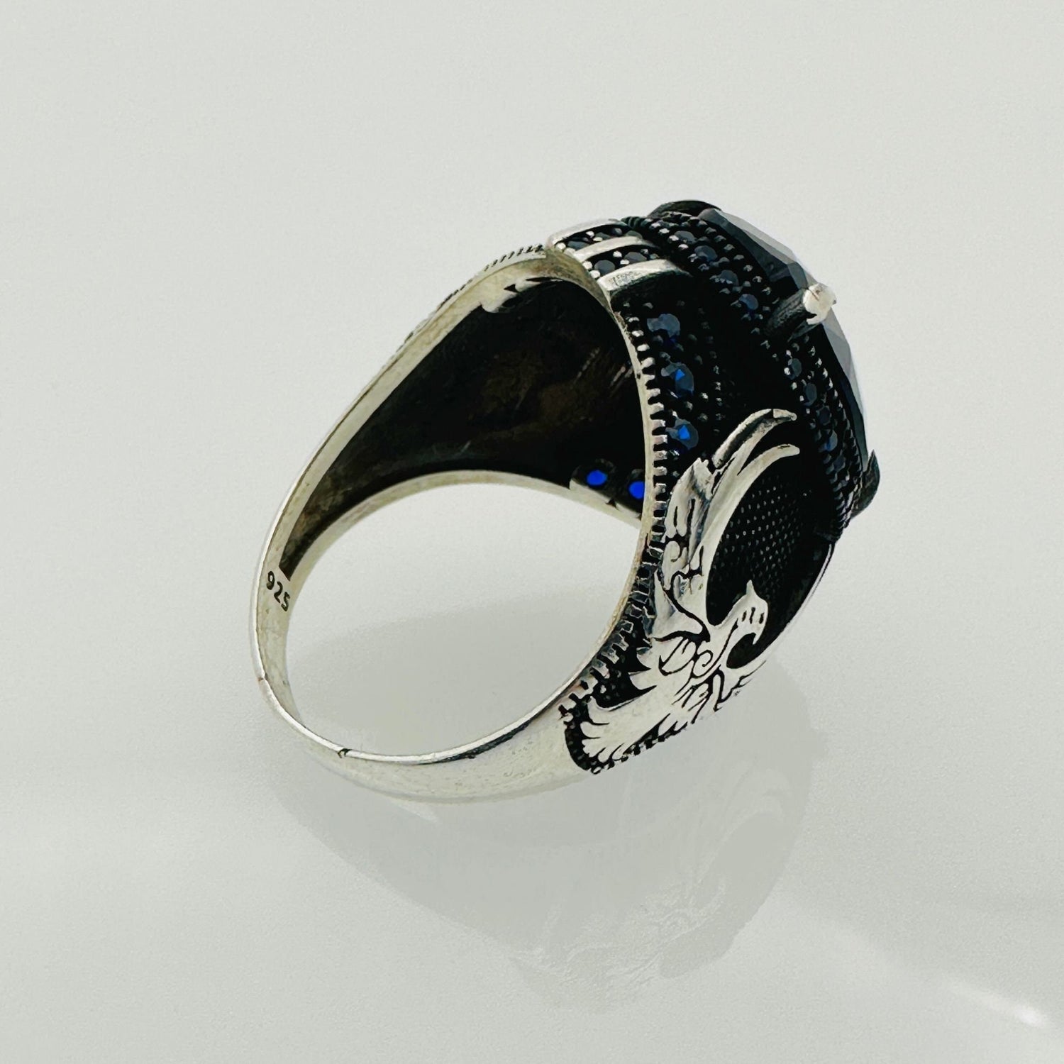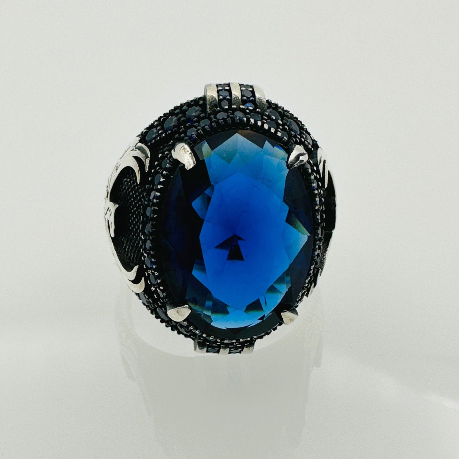 Elevate your style with our Handmade Men's Eagle Blue Sapphire Silver Ring, featuring an elegant eagle design with an oval blue stone. This Turkish handmade ring crafted from 925 silver is a unique animal-inspired piece and a perfect gift for him.