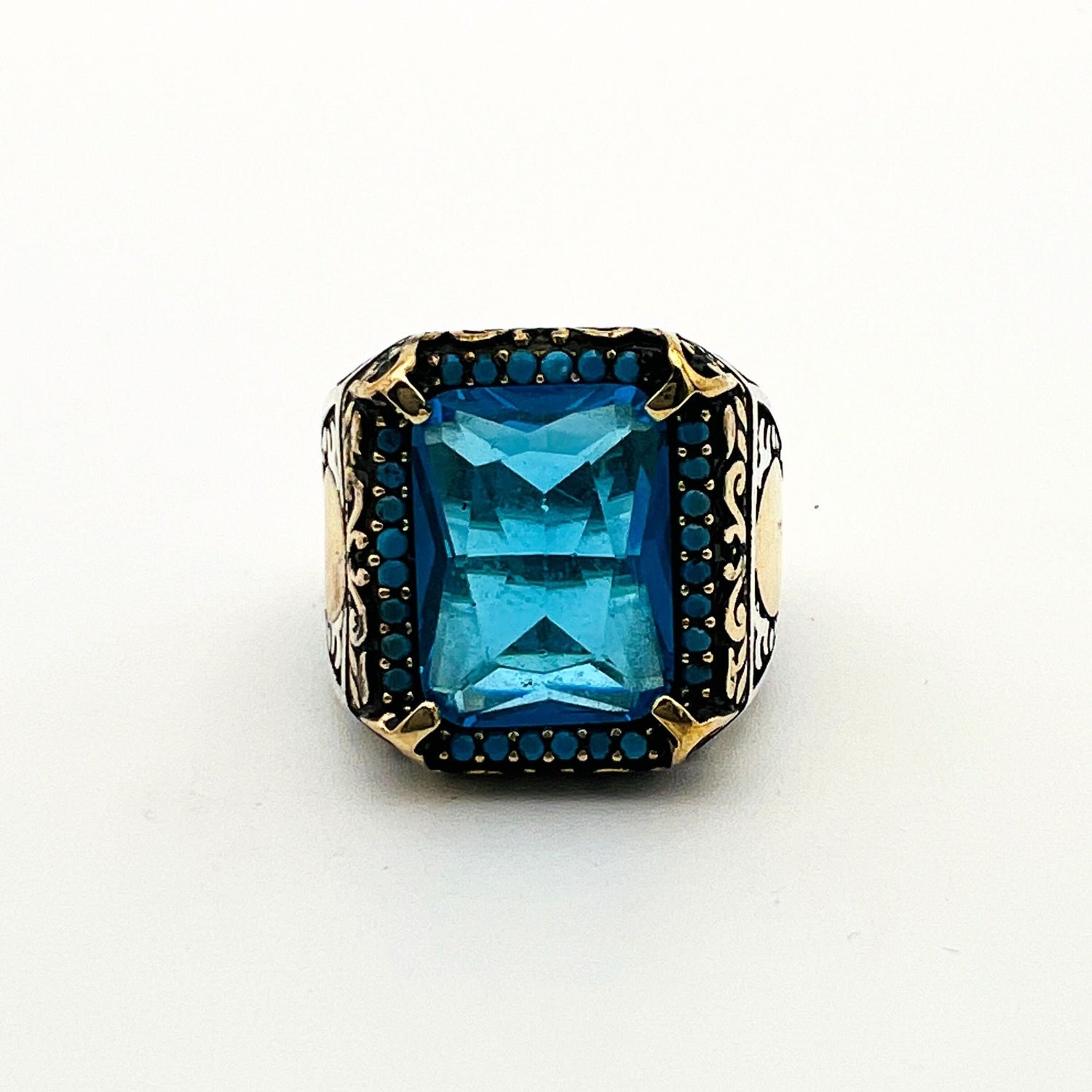 Discover the allure of tradition and modern elegance with this exquisite Men's Aquamarine Silver Ring, a statement piece meticulously crafted to captivate.