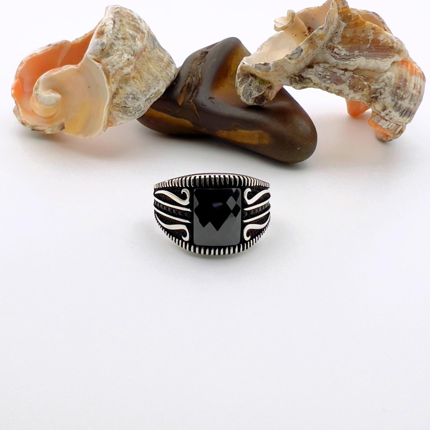 Elevate your style with this striking men's ring, a perfect blend of traditional craftsmanship and contemporary design.