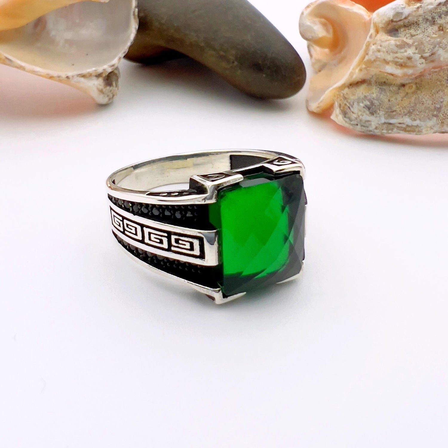 Explore the sophistication of this Mens Handmade Green Emerald Men's Ring, a masterpiece of Turkish handmade silver jewelry. Ideal as a gift for him, this minimalist silver ring is crafted from 925k sterling silver, ensuring lasting quality. Surprise your loved ones with this unique handmade item that comes in a gift box. Delight your father, boyfriend, or husband with this exquisite ring crafted for special occasions. Thank you for considering our shop - happy shopping!