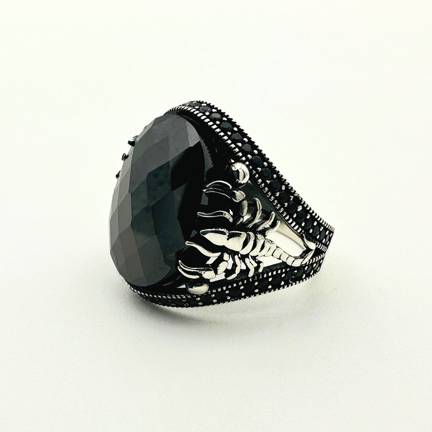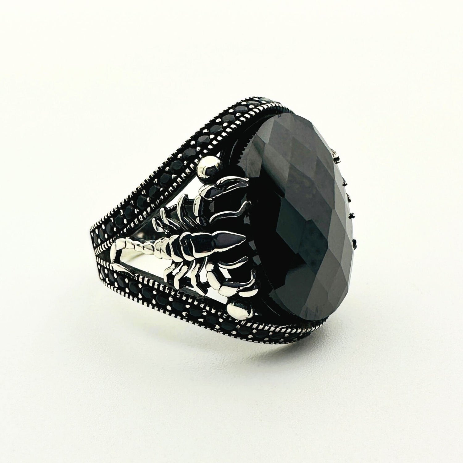 Handmade Sterling Silver Scorpion Ring for Men | Black Onyx & Zircon | Turkish Artisan Jewelry