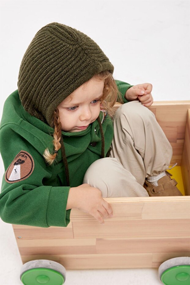crafted with care, this knitted beanie features an adjustable drawstring for a snug and secure fit, ensuring it stays put during all their playful adventures. Its timeless khaki color and unisex design make it a fantastic choice for any child.