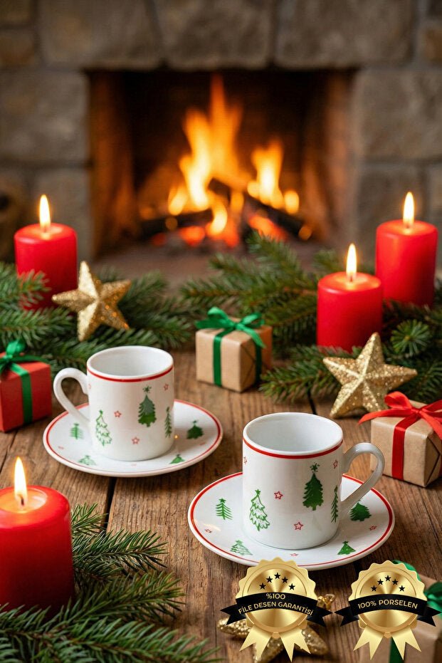 Crafted from high-quality porcelain, this set features a unique 'Cam Agaci' (Glass Tree) design, adding a sophisticated, nature-inspired touch to every serving. Each set includes two beautifully shaped coffee cups and two matching saucers, designed for the traditional enjoyment of Turkish coffee. Its durable construction ensures longevity, making it an ideal choice for cafes, restaurants, and discerning home consumers alike.