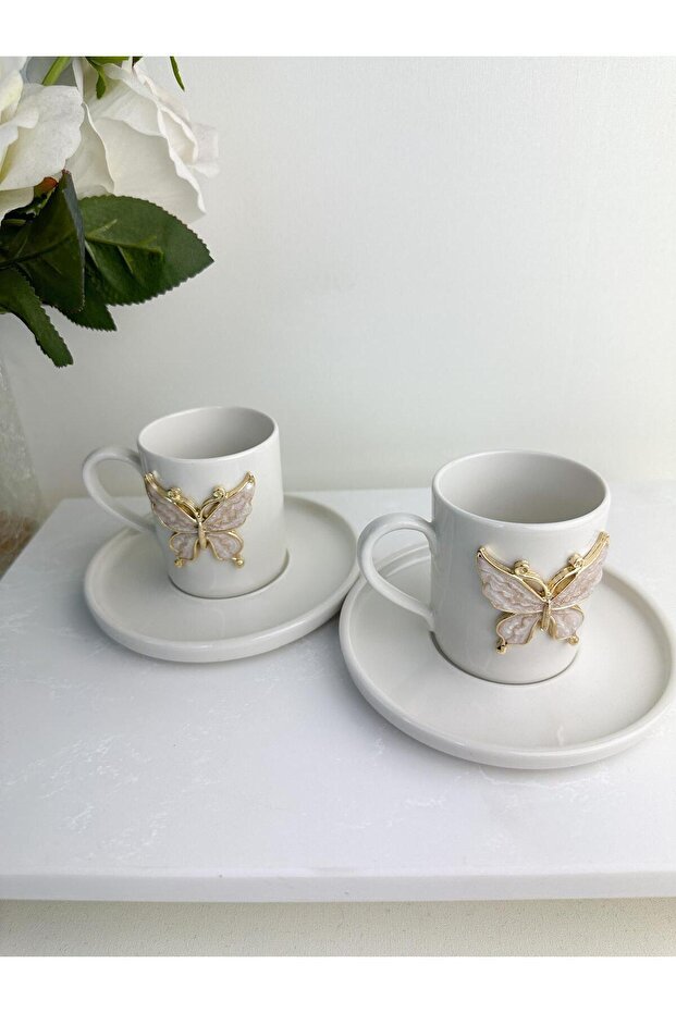 Elevate your customers' coffee ritual with the exquisite Werony Premium Porcelain Butterfly Espresso Coffee Cup Set. This elegant 4-piece collection, featuring two meticulously crafted cups and two matching saucers, adds a touch of sophistication and charm to any espresso or Turkish coffee serving.