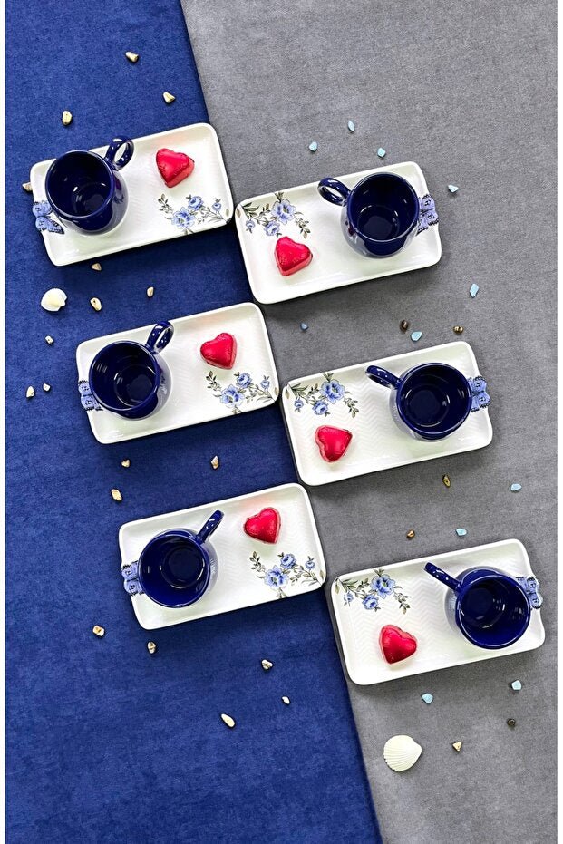 This premium 12-piece set features six beautifully designed Turkish coffee cups paired with six matching saucers, showcasing traditional artistry infused with a modern "Love Collection" motif. Each piece is crafted from high-quality, durable porcelain or ceramic, promising both aesthetic appeal and lasting utility for daily use or special occasions.