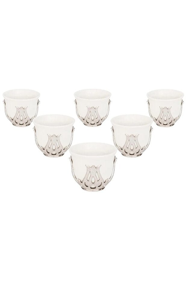 Kt Home Professional Porcelain Arabic Espresso Coffee Cup Set - Silver 6 - Piece - TryAladdin