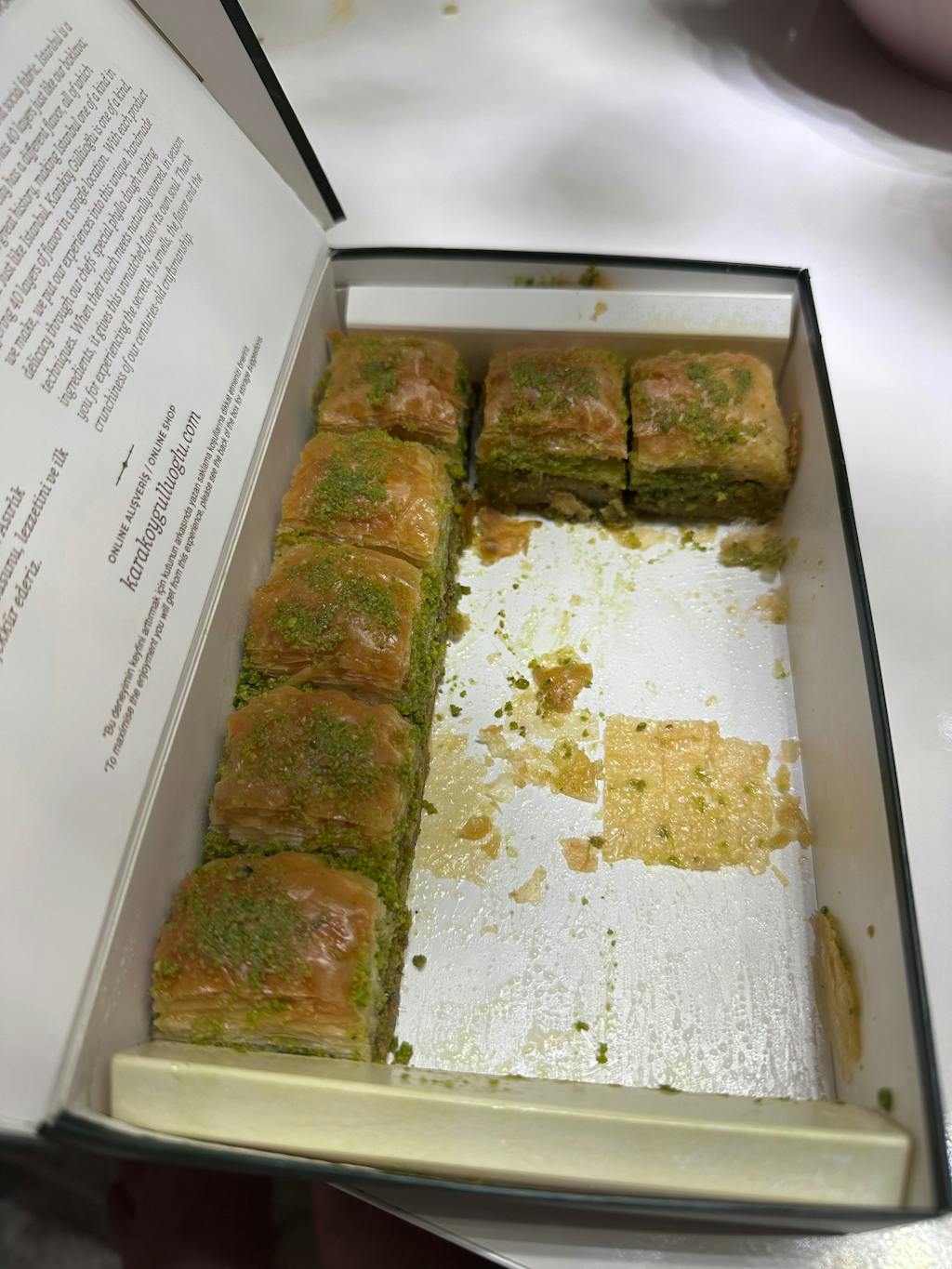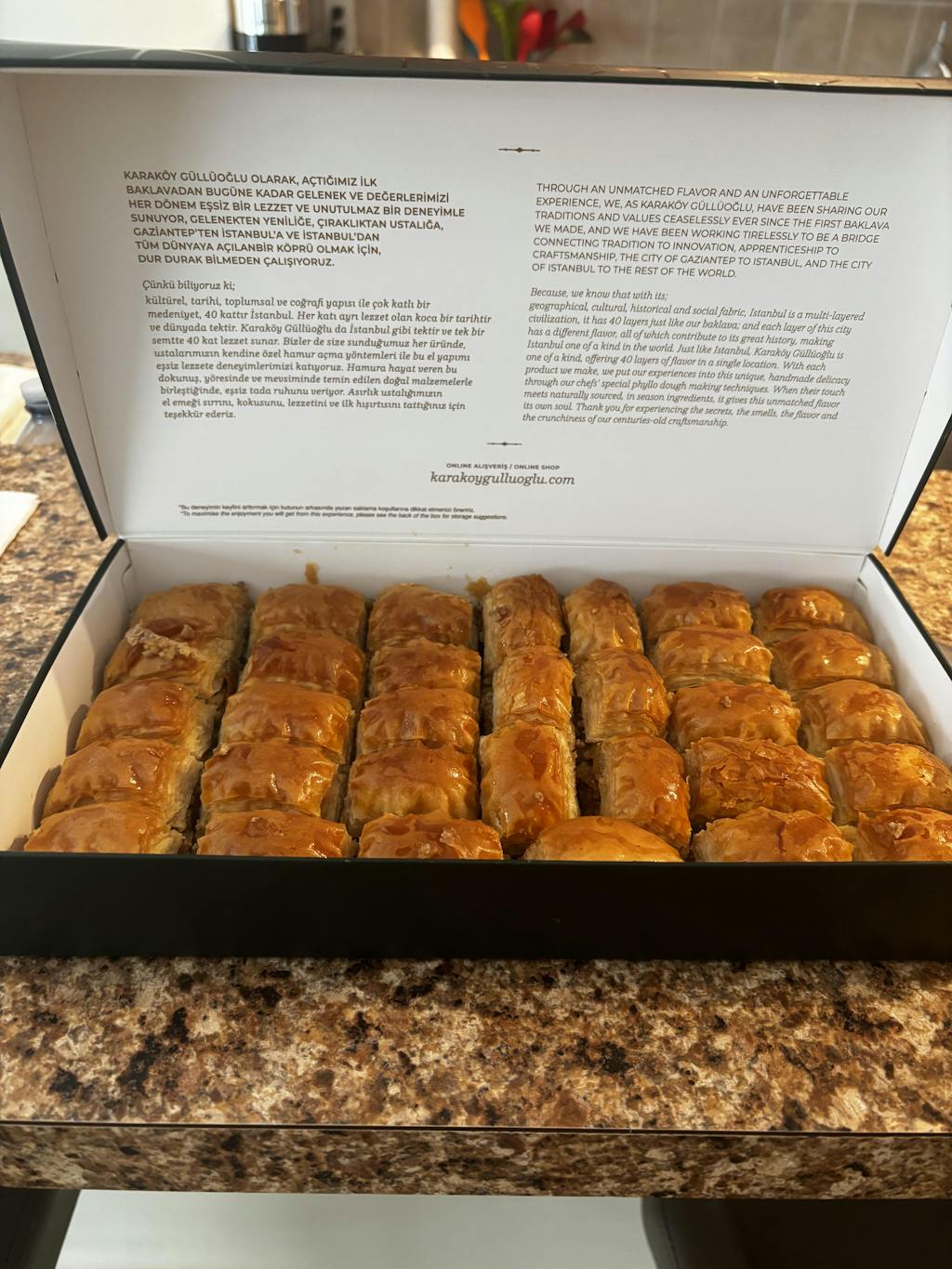 Cómo disfrutar: Para la mejor experiencia, calienta tu baklava en un horno convencional o tostador durante 5-7 minutos a una temperatura no mayor a 300°F.