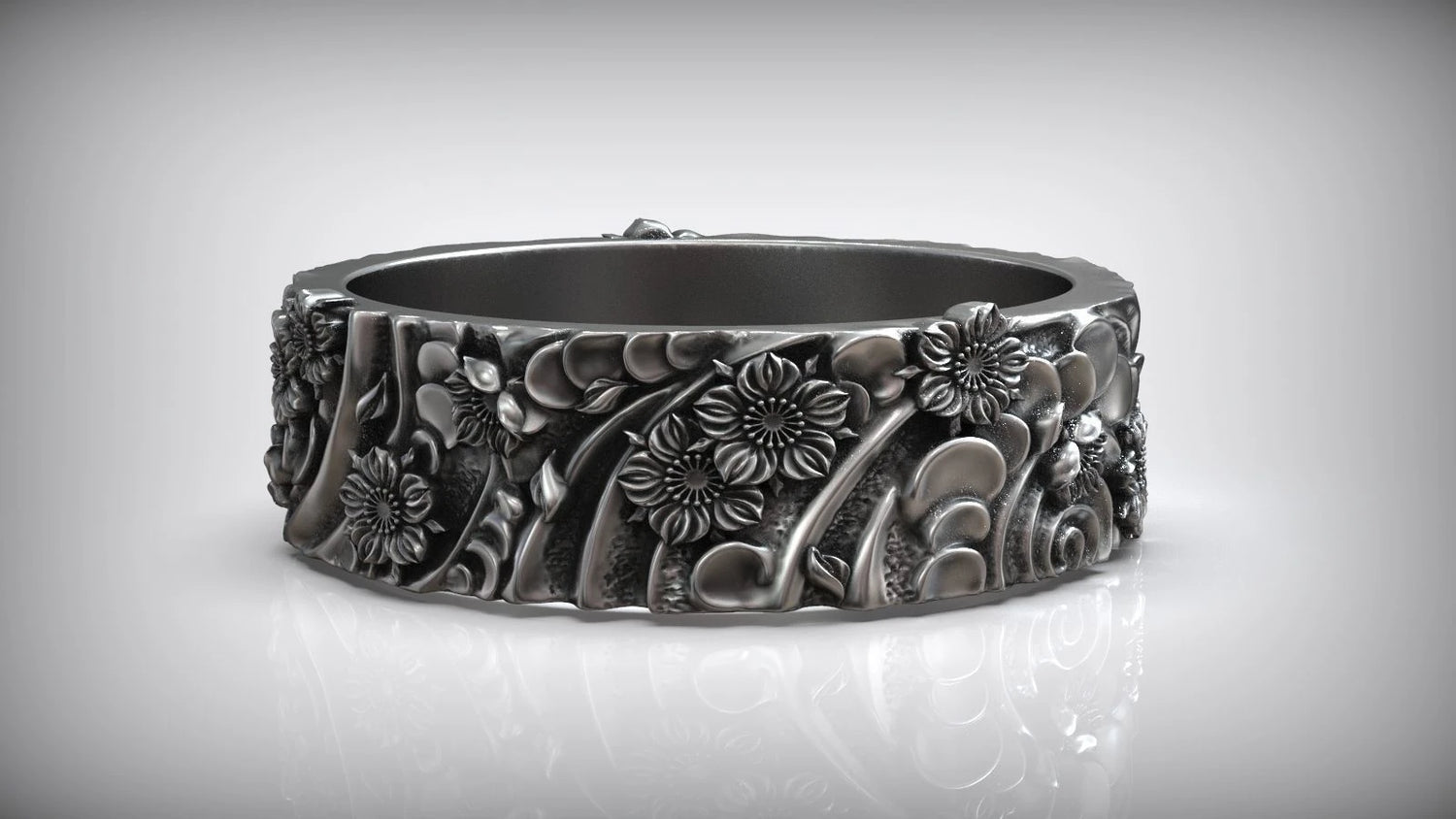 Experience the serene beauty and artistic expression embodied in every curve and petal of this captivating ring, an essential addition for any high-end jewelry retailer.
