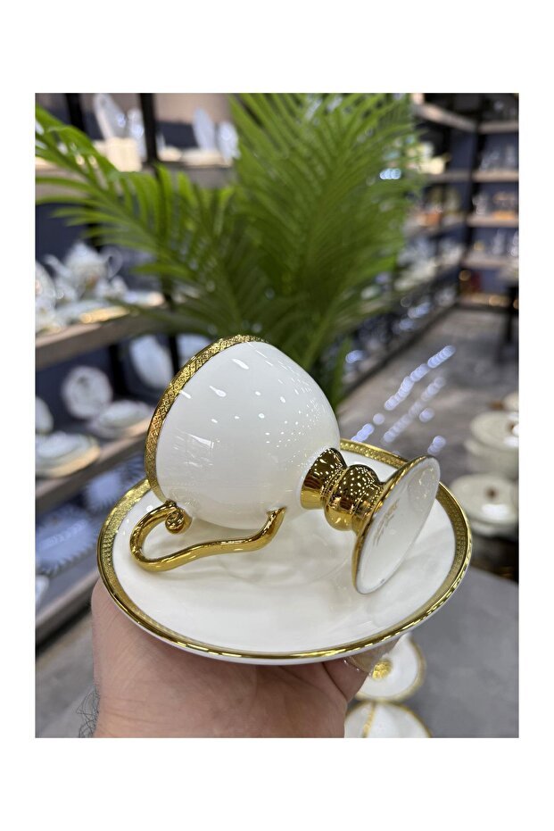 Ensemble de tasses à café turc blanc professionnel Thelma Gold Premium Acar - 6 pièces