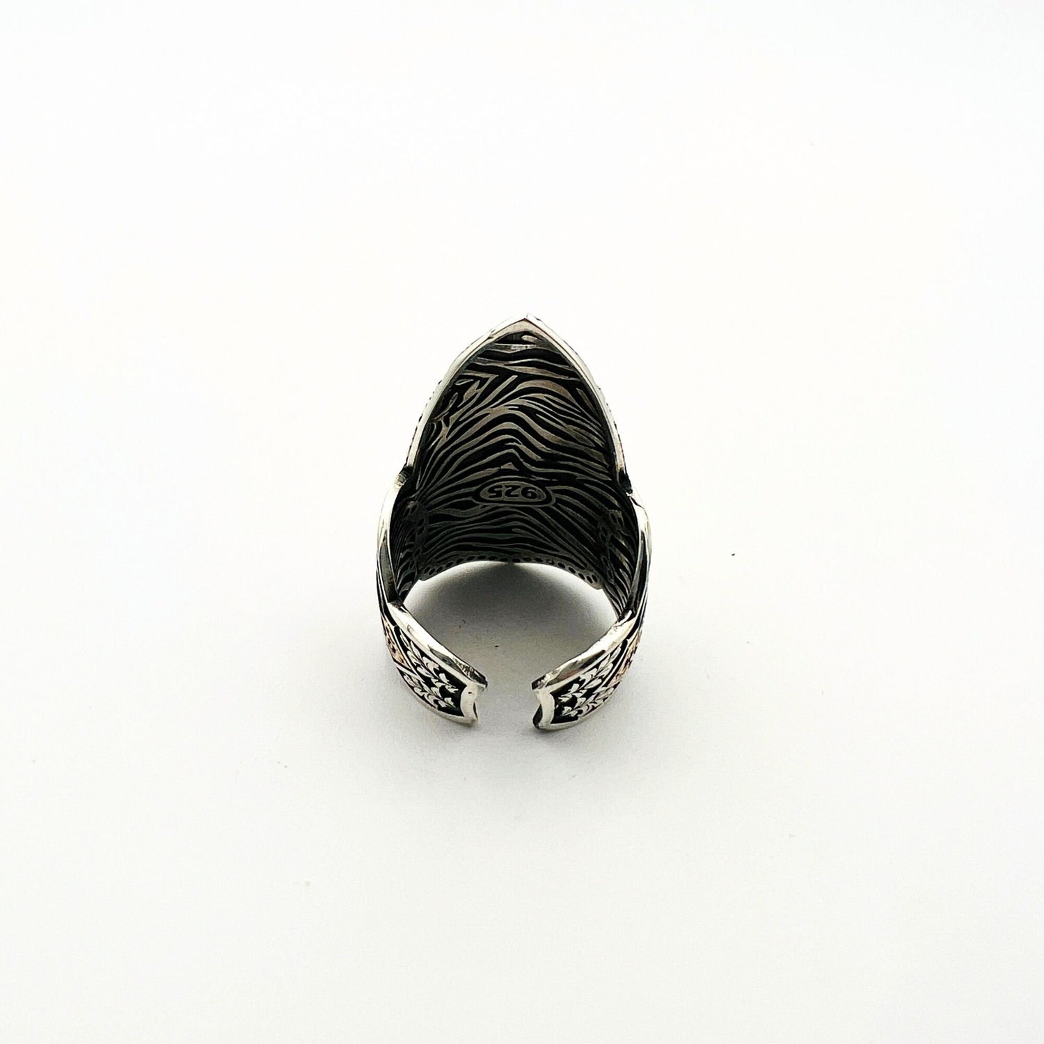 Découvrez la qualité inégalée d'une bague fabriquée en argent sterling 925 authentique, garantissant une beauté et une durabilité durables. Pesant environ 18 grammes, elle offre une sensation substantielle mais confortable, parfaitement équilibrée pour un port quotidien ou des occasions spéciales. Le design unique à dos ouvert garantit un ajustement réglable et personnalisé, la rendant idéale pour n'importe quel doigt.