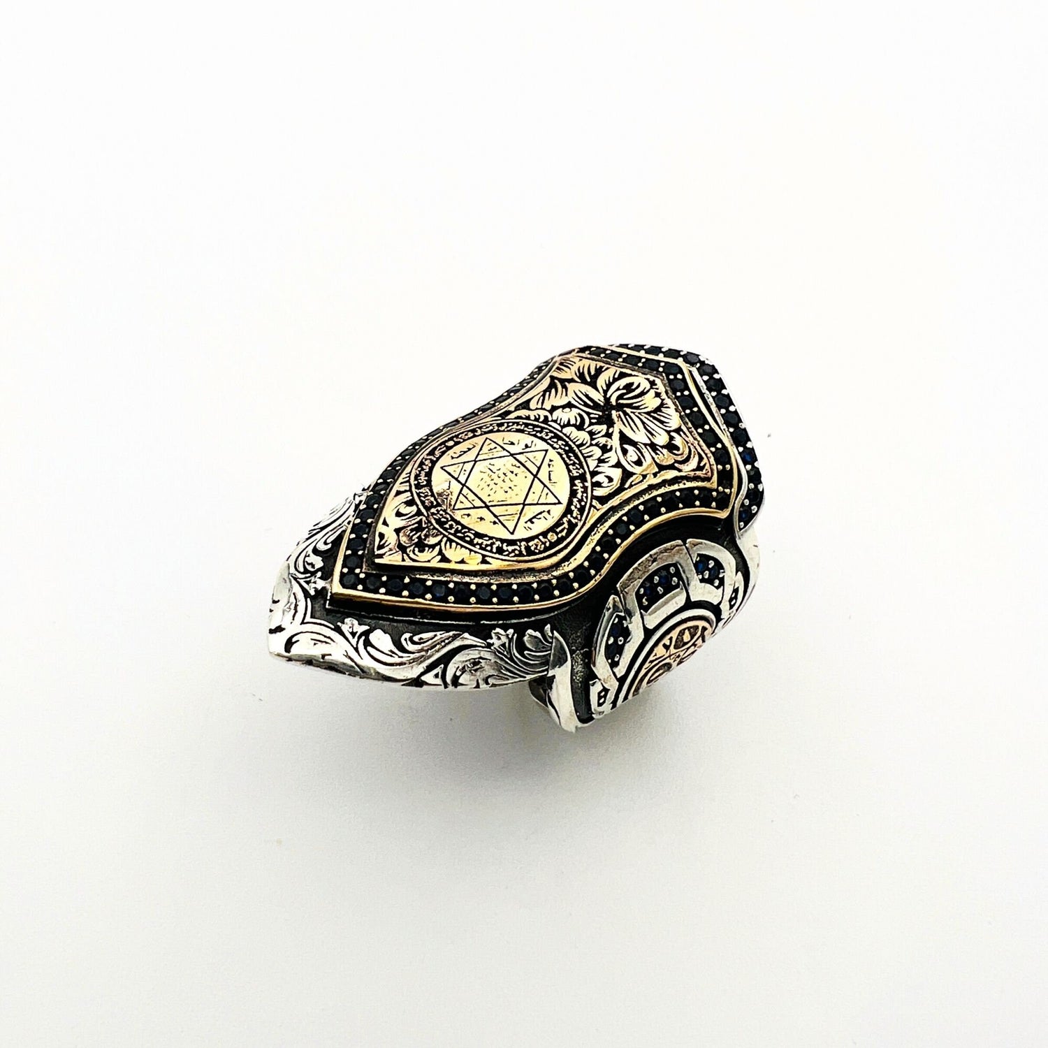 Bague de pouce archer en argent sterling Sceau de Salomon – Zihgir turc fait main avec Étoile de David