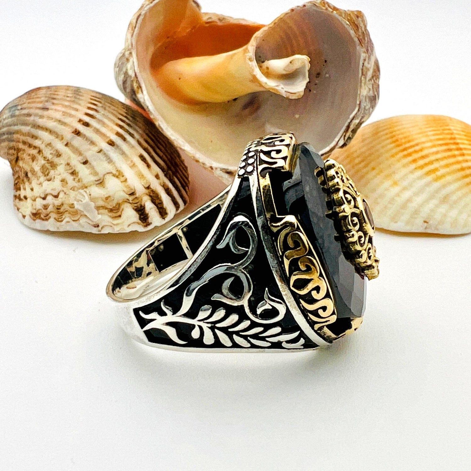 - Anello turco fatto a mano in argento sterling 925 con motivi dettagliati