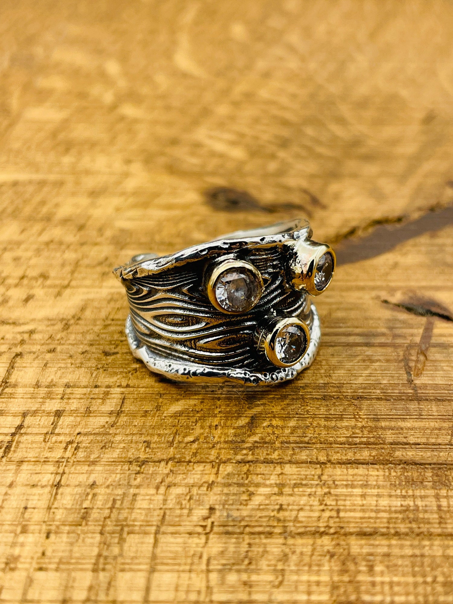 Anello regolabile da donna con tre pietre di zircone bianco - fatto a mano in Turchia