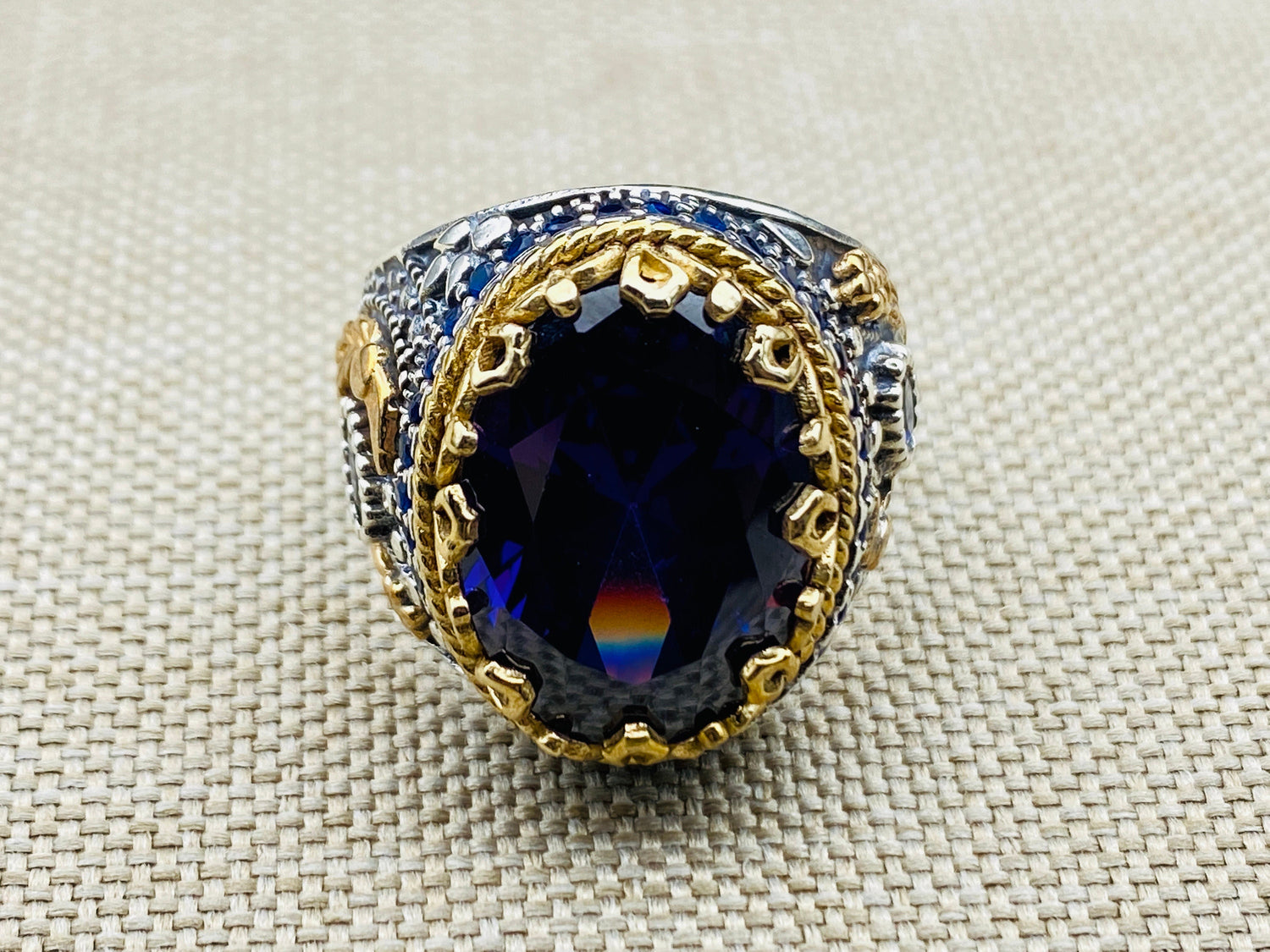Anello da uomo con pietra Acquamarina - Stile ottomano fatto a mano turco
