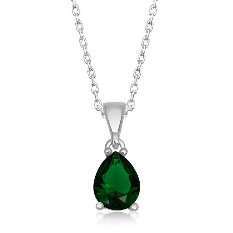 Sterling Silver Green Crystal Teardrop Solitaire Necklace