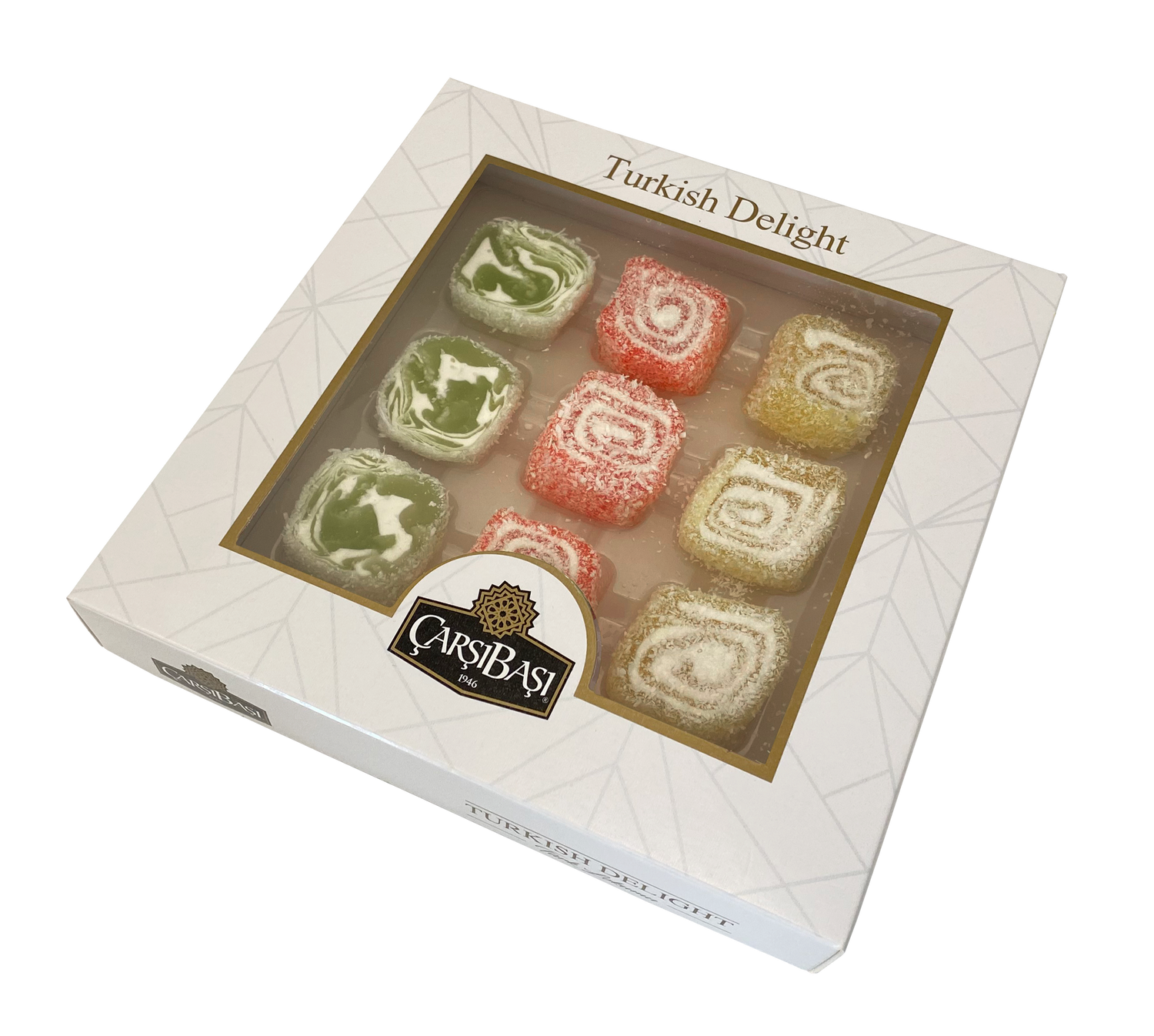クラシックな菓子に鮮やかでモダンなひねりを加えました。この300gのCarsibasiウィンドウボックスには、9個の美しいクリーム入り「サルマ」(ロール)トルコ風デライトが入っており、さまざまなフルーツフレーバーが弾けます。