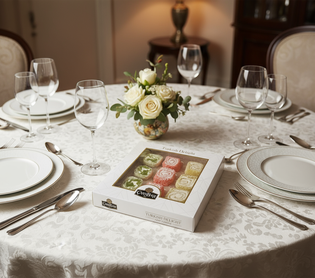 - ユニークなロールド「サルマ」スタイル:クリーミーなフィリングを包んだモダンなロールスタイルで、標準的なロクムとは異なる独特で洗練された食感を提供します。
