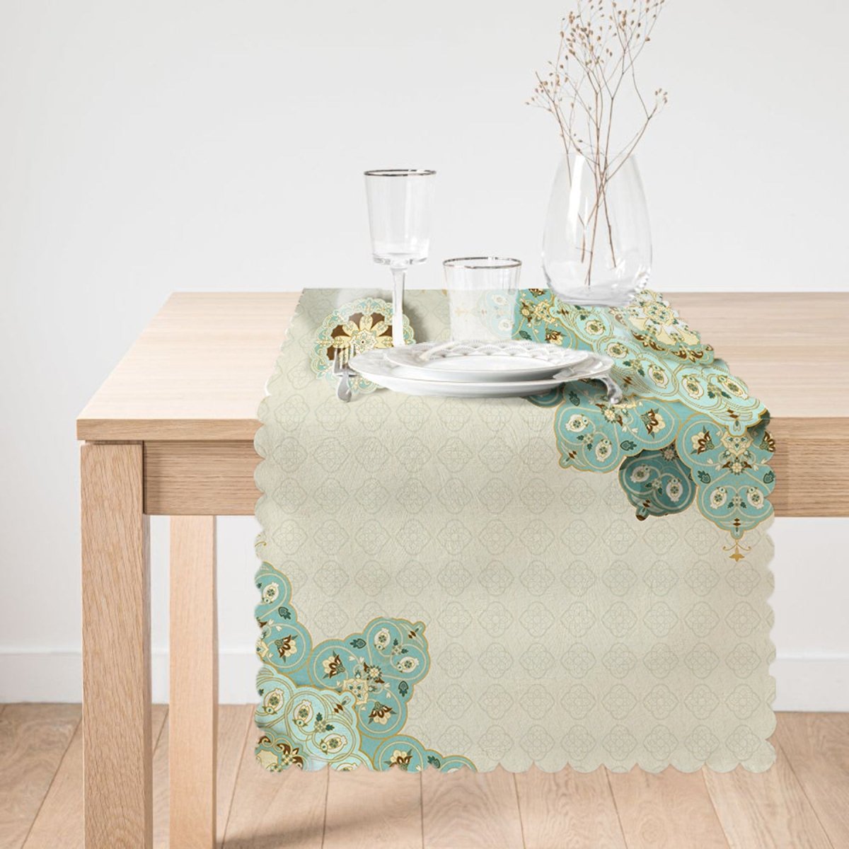 マンダラデザイン ムバラク ラマダン モチーフ ランナーとクッションピローカバーセット