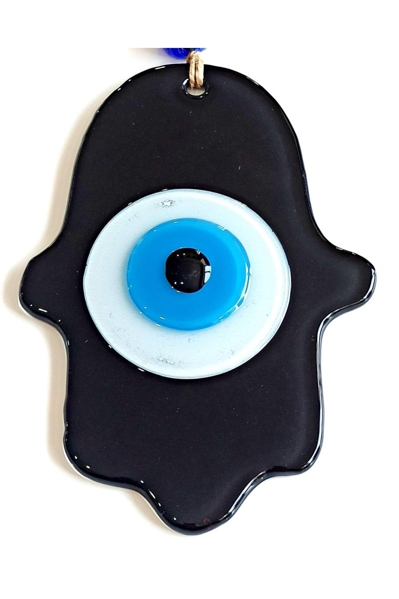 ナザールビーズの黒い手形のガラス壁飾り:保護と文化的誇りの大胆な表現