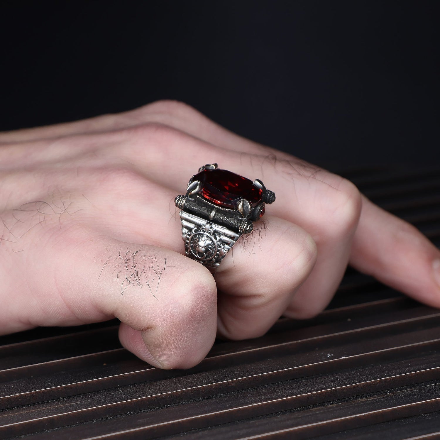 Elevate Your Look with Men's Silver Ring featuring Red Zircon Stone