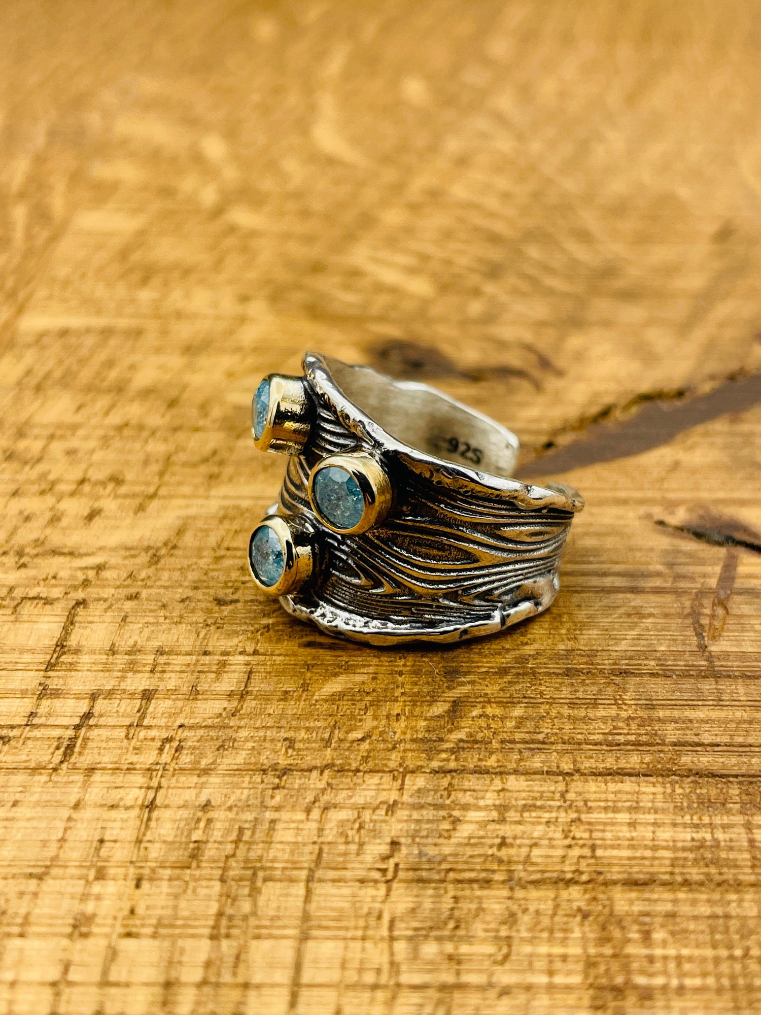 - 아쿠아마린 돌이 박힌 정교한 수제 반지