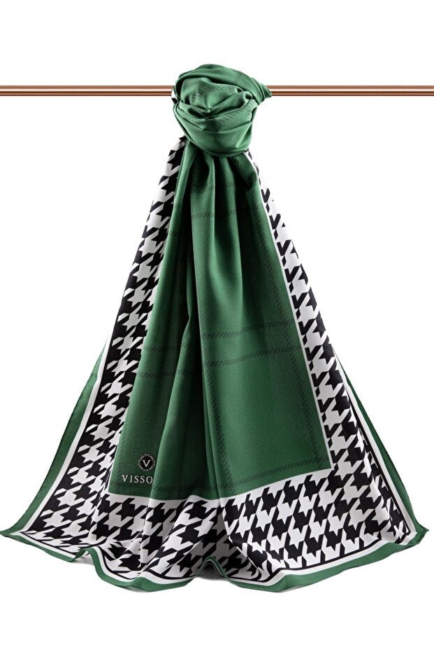 세련된 에메랄드 그린과 블랙 색상 조합이 특징인 이 숄은 어떤 의상에도 귀족적이고 스타일리시한 터치를 더하도록 설계되었습니다. 블랙과 화이트 섹션의 독특한 하운드투스 패턴은 풍부한 에메랄드 그린과 어우러져 클래식하면서도 현대적인 시각적 매력을 만들어냅니다.