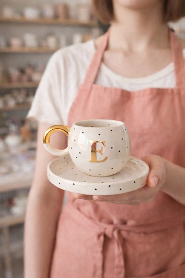 Luxury 24k Gold Gilded Double Turkish Coffee Espresso Cup Set - 'E' Initial - TryAladdin