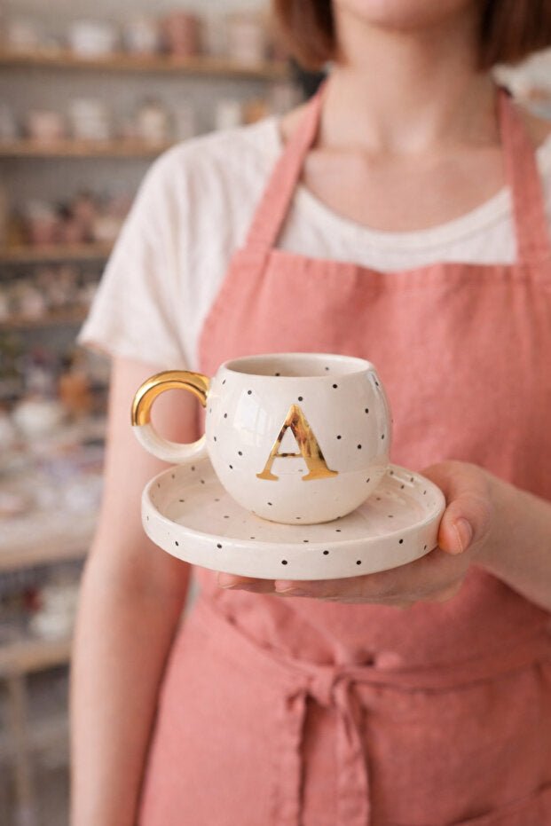 Premium 24K Gold Gilded Turkish Coffee Cup Set - Monogram A - 2 - Piece Set - TryAladdin