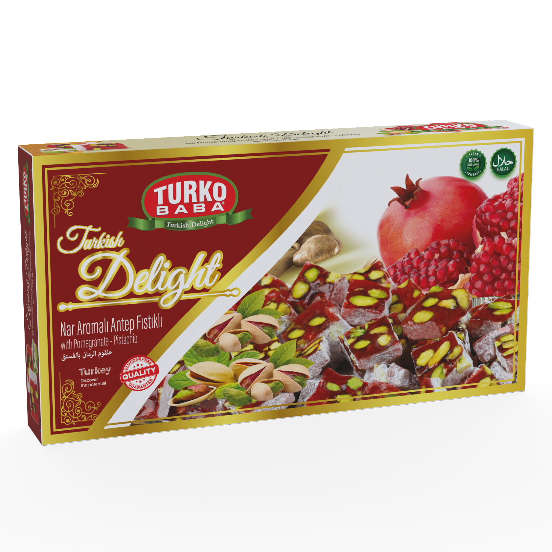 TURKOBABA Premium Granaatappel Pistache Turkse Delight Lokum - 400g