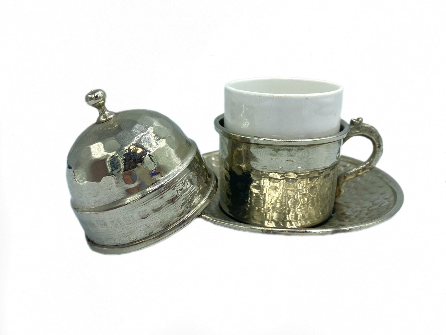 Lavina | Copper Turkish Coffee Cup with Lid Silver Color - TryAladdin