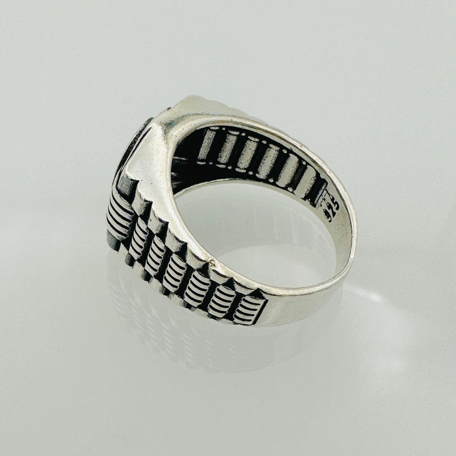 Green Agate Stone Men Ring - 925 Sterling Silver Minimalist Design